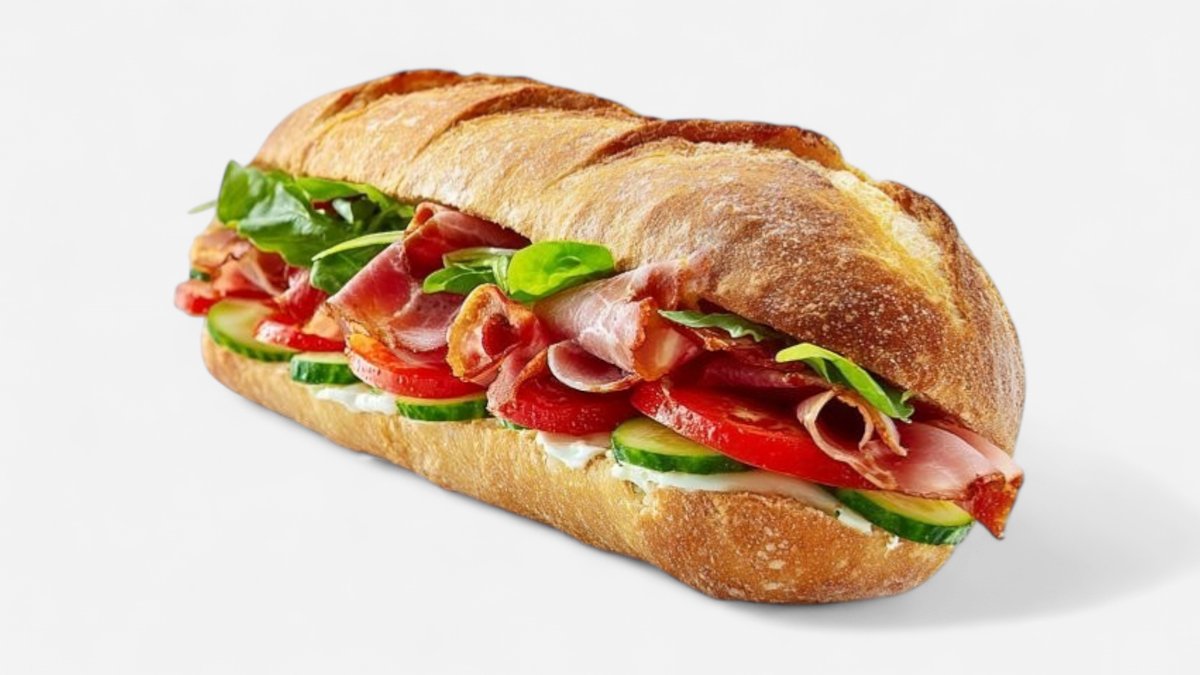 mit Kochschinken, Tomaten, Gurken und Eisbergsalat