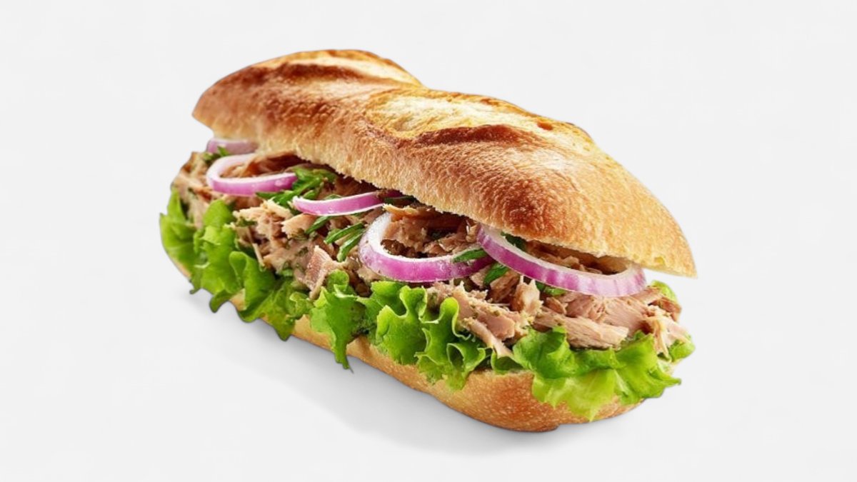 mild mit Thunfisch, Zwiebeln, milden Peperoni und Eisbergsalat