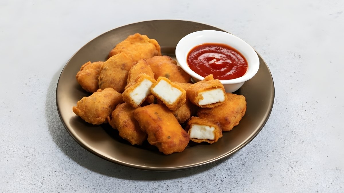 4 Stück hausgemachter indischer Käse in Kichererbsenteig frittiert