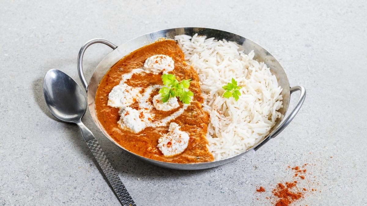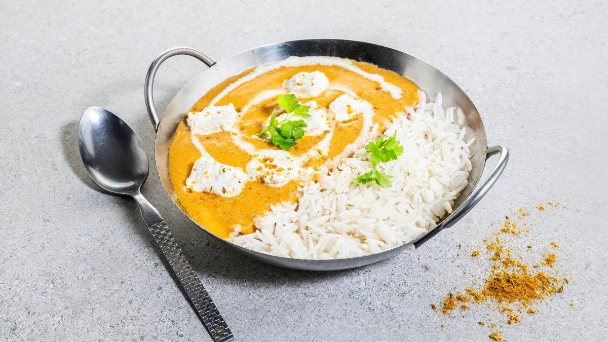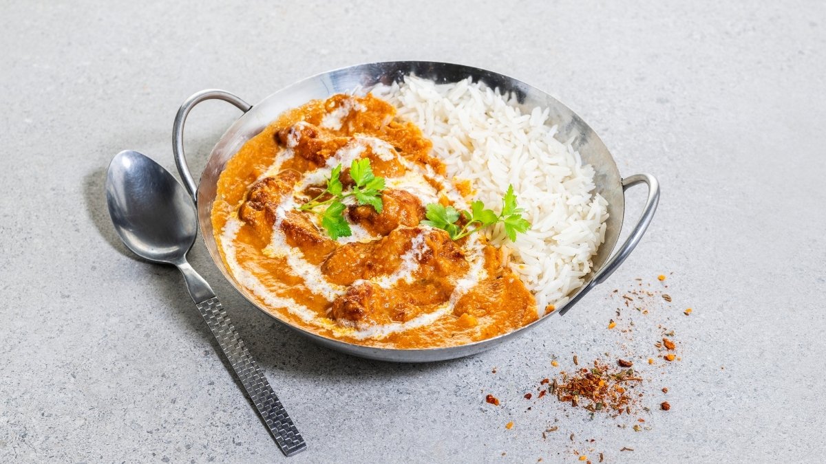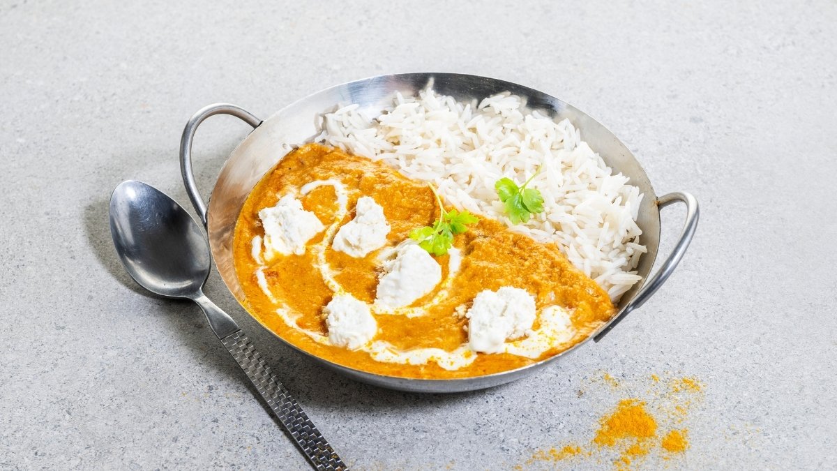 zartes Huhn in einer seidigen, kokosbasierten Korma-Soße mit feinen Gewürzen