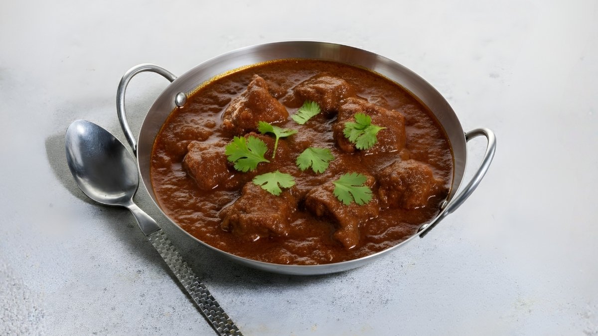 mittelscharf würziges Lammcurry mit Essig und Knoblauch, voller Geschmack