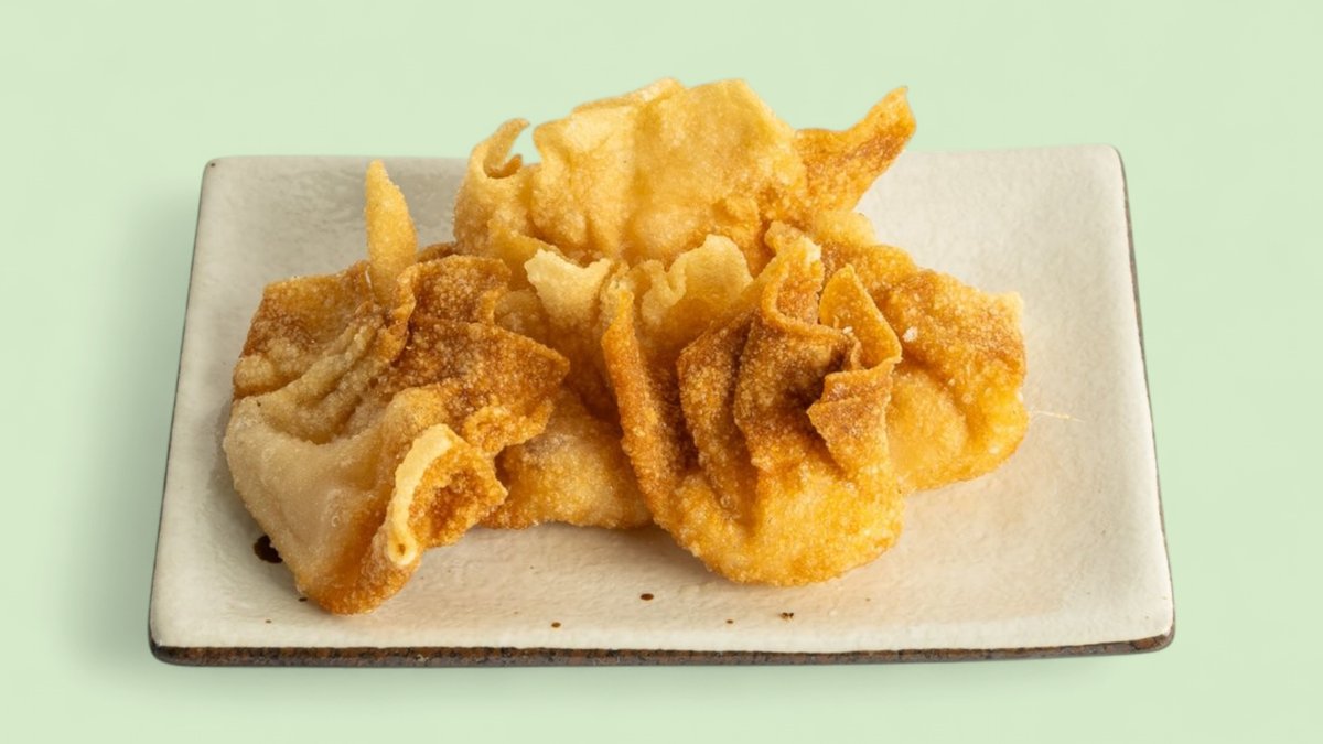 6 Stück gebackene Teigtaschen mit Schweinefleisch und Chinakohl, serviert in einer Große deiner Wahl