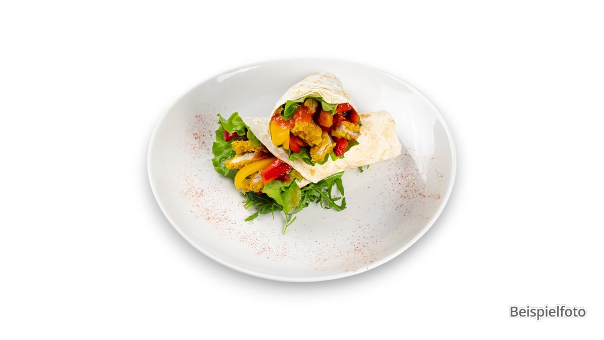alle Wraps werden mit Pilzen, Mais, Paprika und Tomatensoße zubereitet