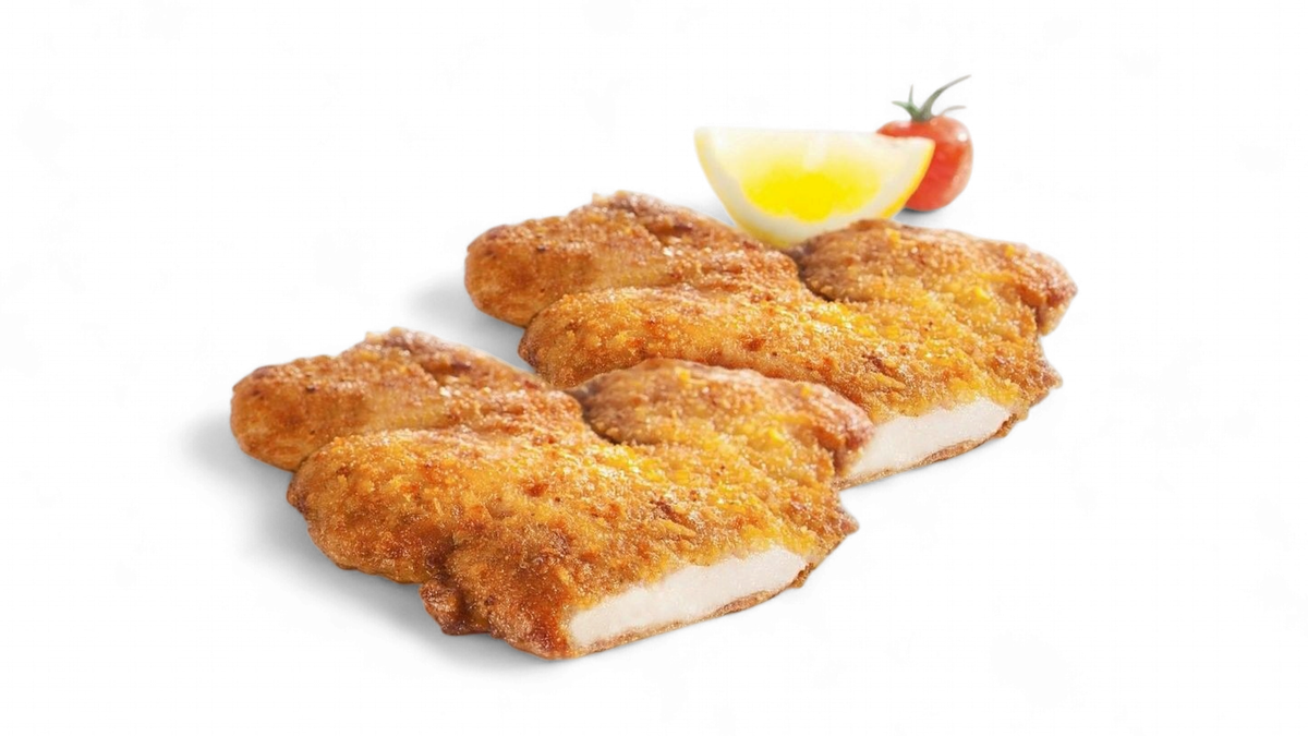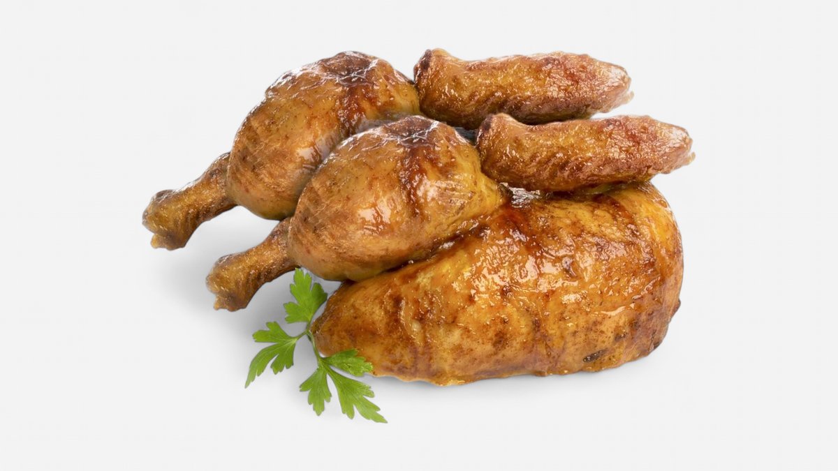 halbes, paniertes, gebackenes Grillhähnchen mit Zitrone