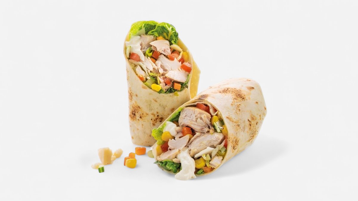 alle Wraps werden mit Weizentortilla, Salat, Tomaten, Mais, Gurken und Kräuter-Knoblauchsoße zubereitet („Caesar Wrap” wird ohne Salat, Tomaten, Mais, Gurken und Kräuter-Knoblauchsoße zubereitet)