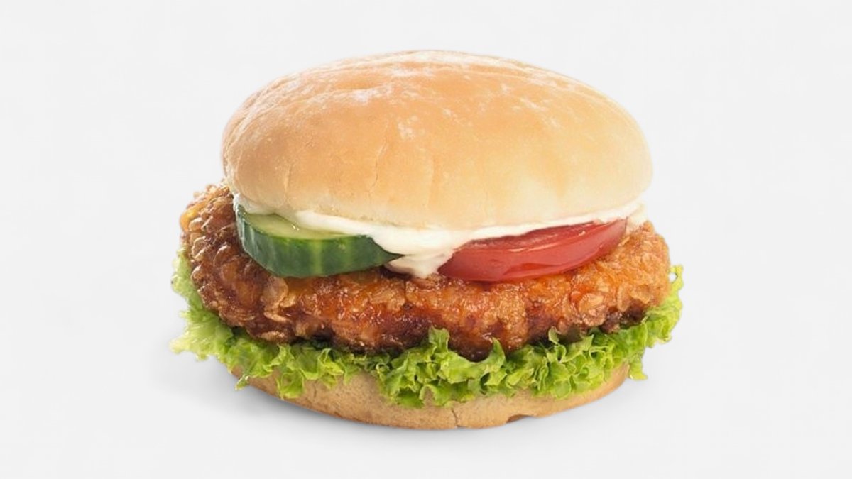 mit Hähnchen-Patty, Gurken und Mayonnaise