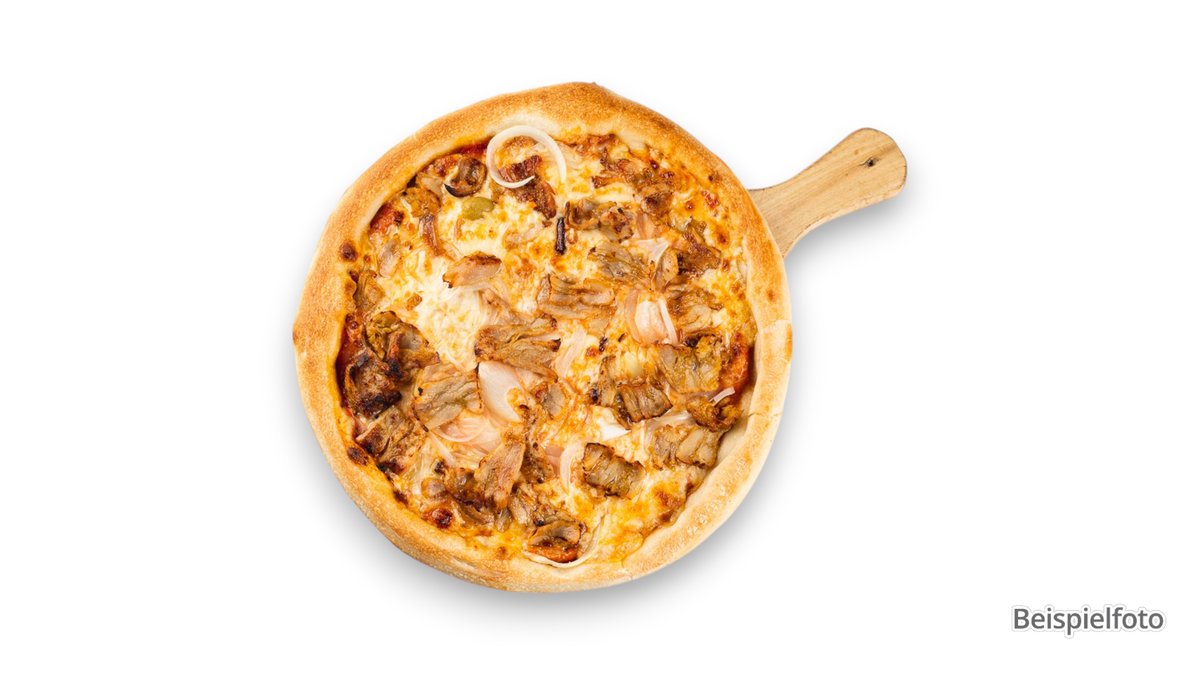 mit Drehspießfleisch, Weichkäse und Peperoni