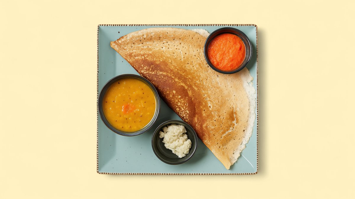 knuspriger Crêpe aus Reismehl und verschiedenen Linsen, bestrichen mit Ghee