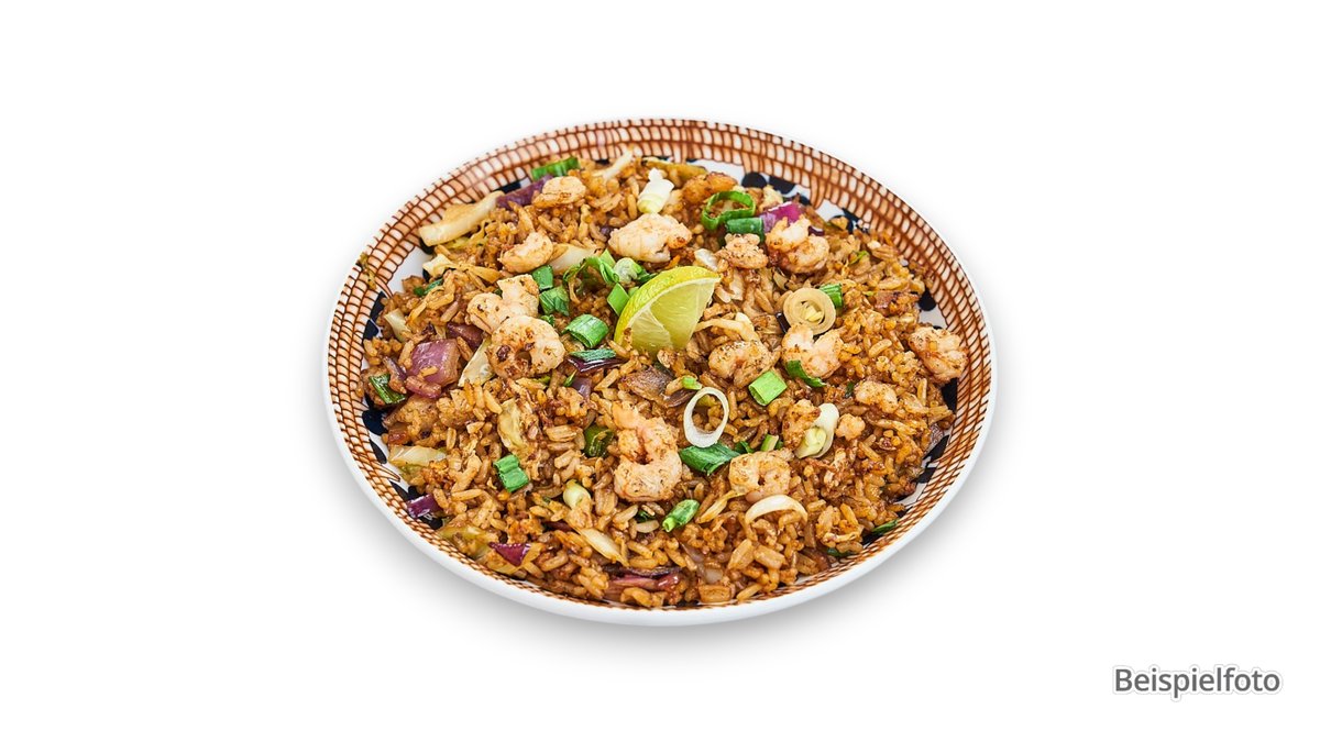 gedämpftes Reismehl mit Kokosraspeln, angebraten mit Gemüse und Gewürzen