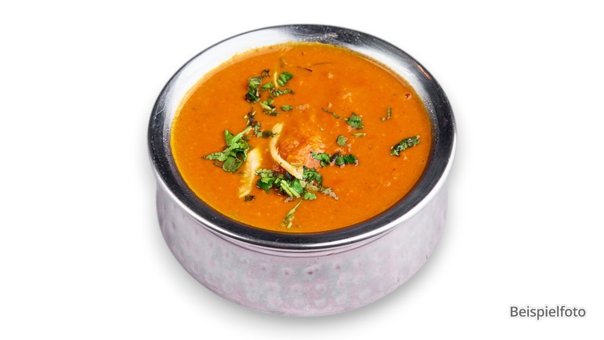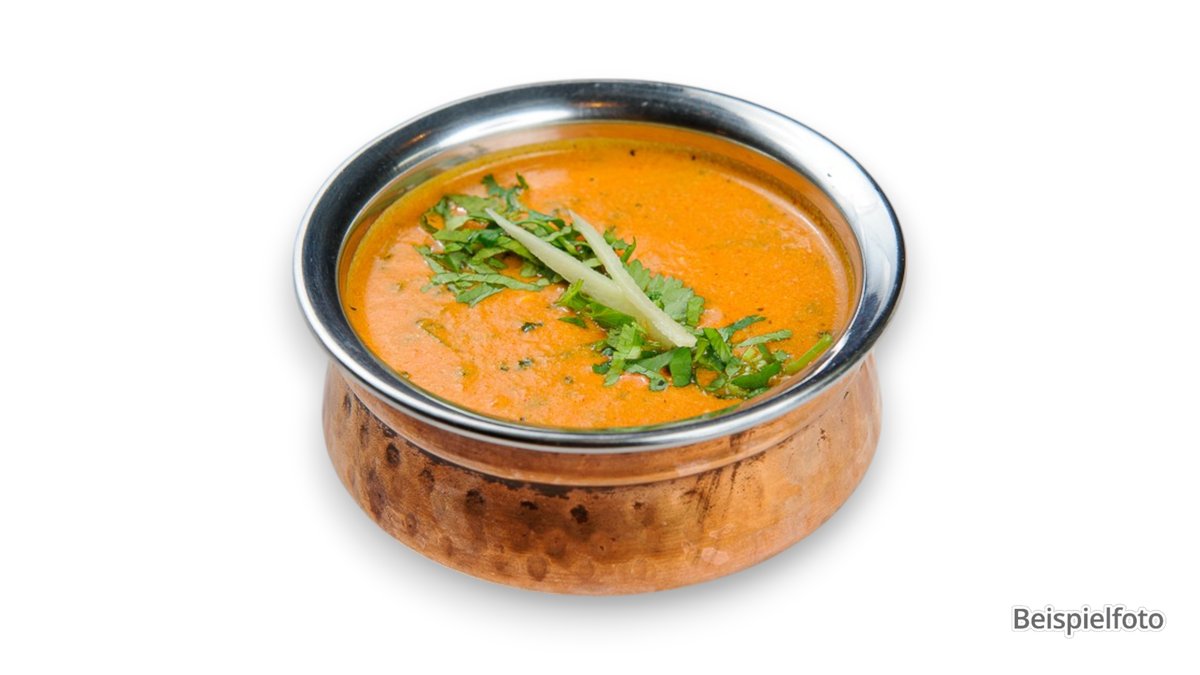 in cremiger Tomaten-Currysoße mit Gewürzen und Sahne