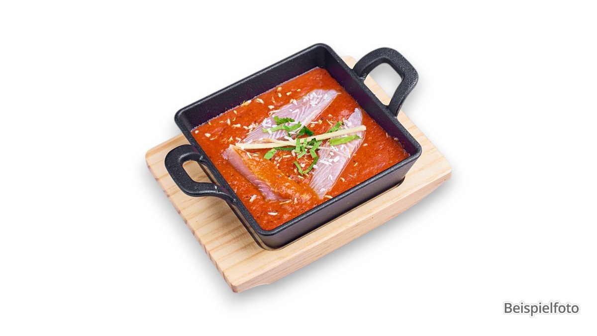 Fisch in würziger Tomaten-Zwiebelsoße mit aromatischen Gewürzen und Kräutern
