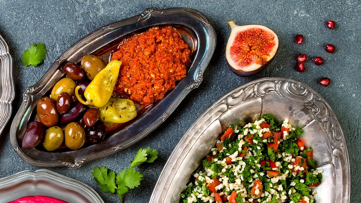 Ein Geschmack des Nahen Ostens mit klassischen Favoriten: Hummus, Falafel, Shawarma und herzhafte Bohnen