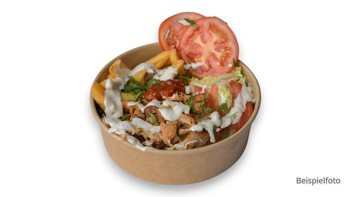 alle Gerichte werden mit Hähnchen-Dönerfleisch und einer Soße deiner Wahl zubereitet („14. Veggie Box” wird ohne Dönerfleisch zubereitet)