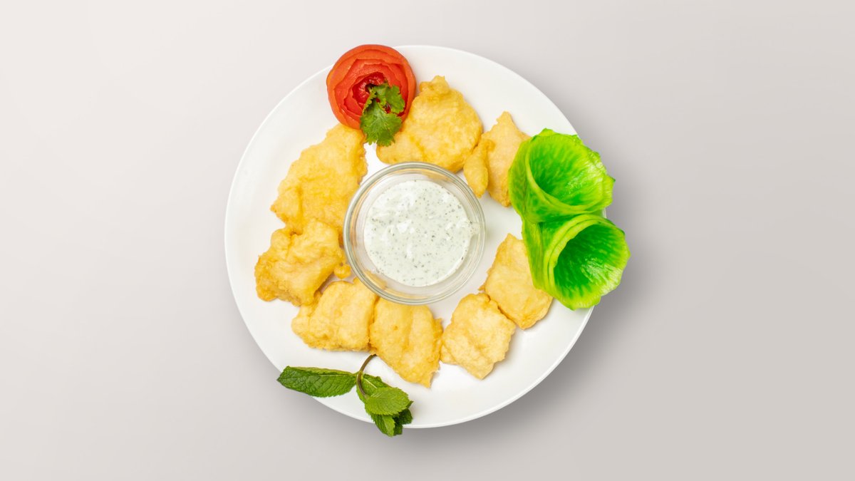 Fischfiletstücke im Kichererbsenteig mariniert und frittiert