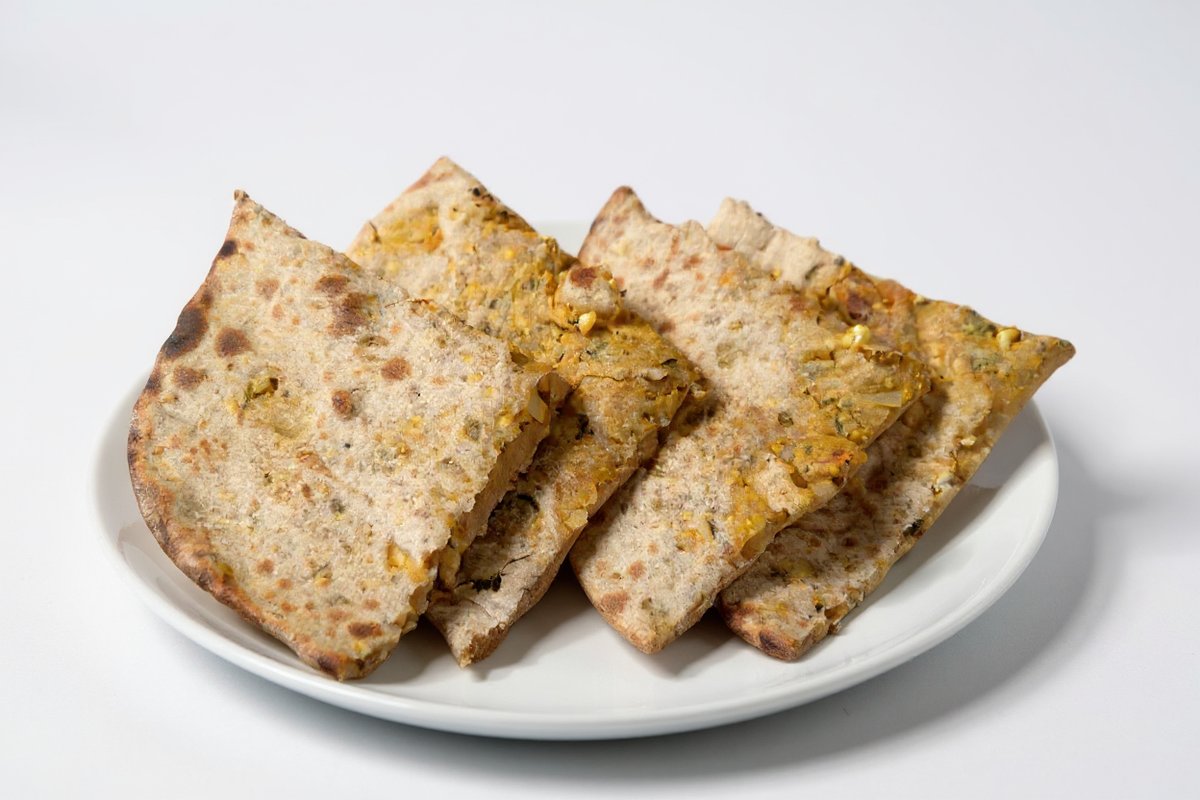 gefülltes Vollkorn-Fladenbrot mit Kartoffeln und indischen Gewürzen