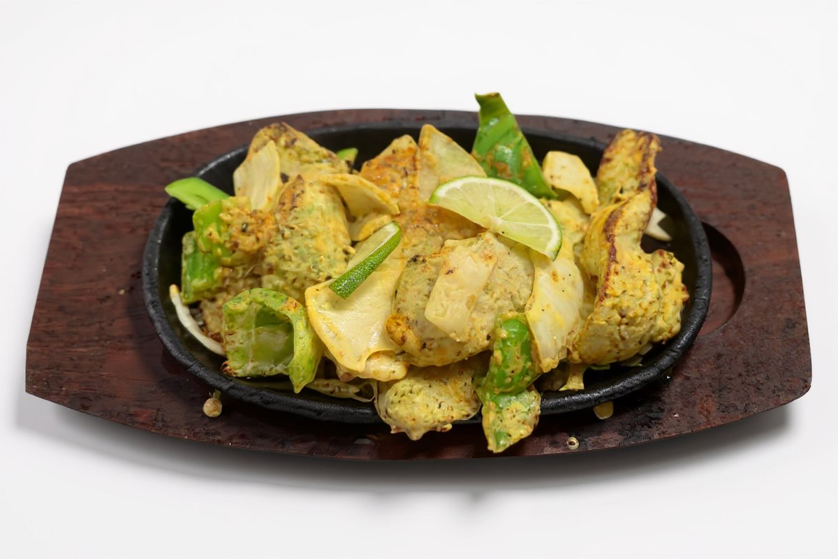 alle Gerichte werden 24 Stunden in Joghurtsoße und vielerlei Gewürzen mariniert, im Tandoor (indischer Tonofen) auf Holzkohle gegrillt und mit Basmatireis und Makhni-Soße (Tomaten-Sahnesoße) serviert