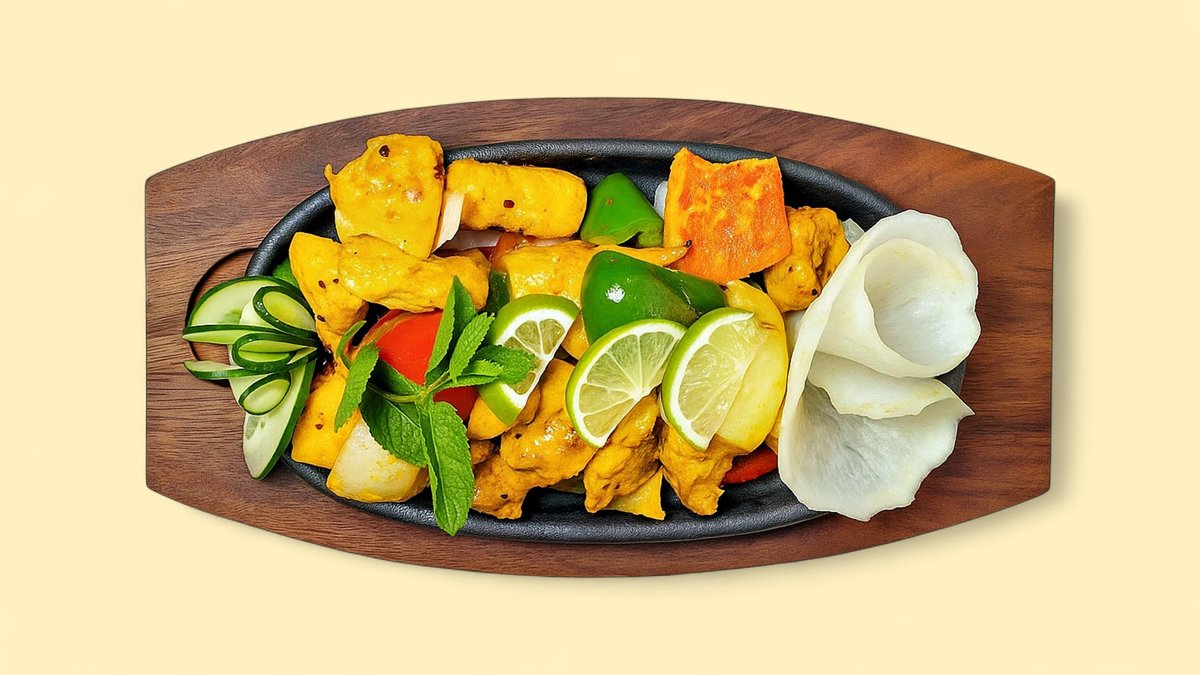 Hähnchenfleisch nach Art des Hauses, geschmort im Karahi (indischer Spezialtopf)