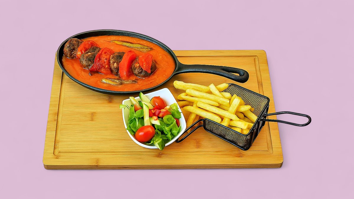 Patlican Yataginda Köfte und Bulgur Pi̇lavi