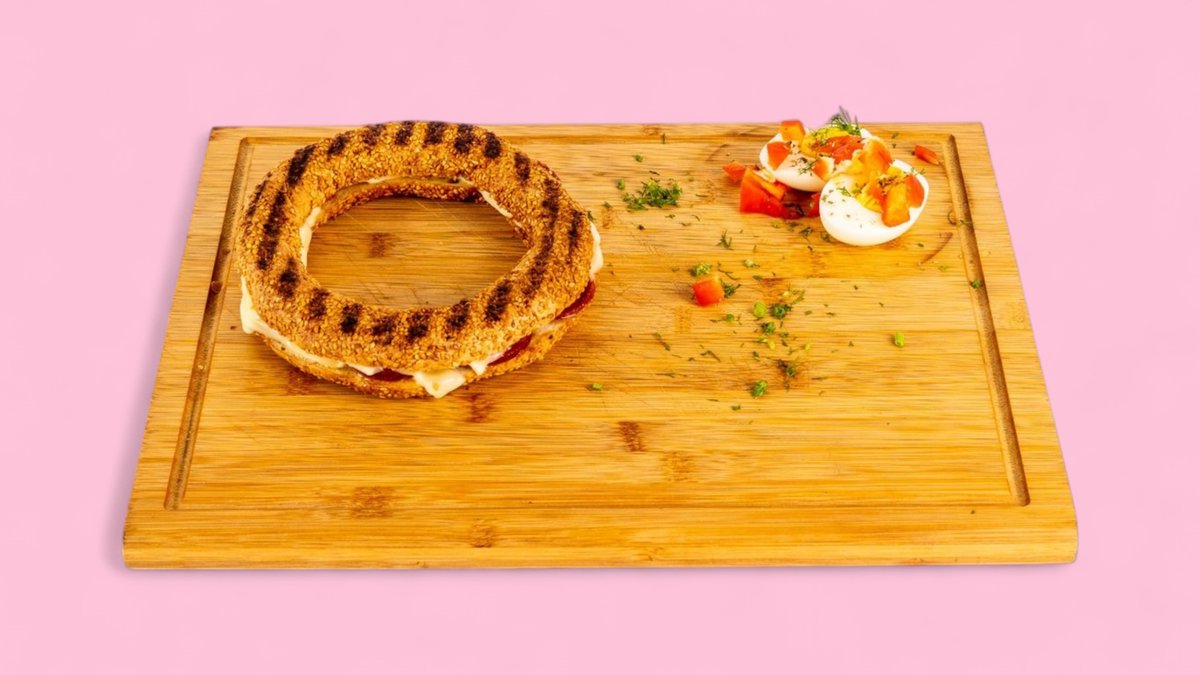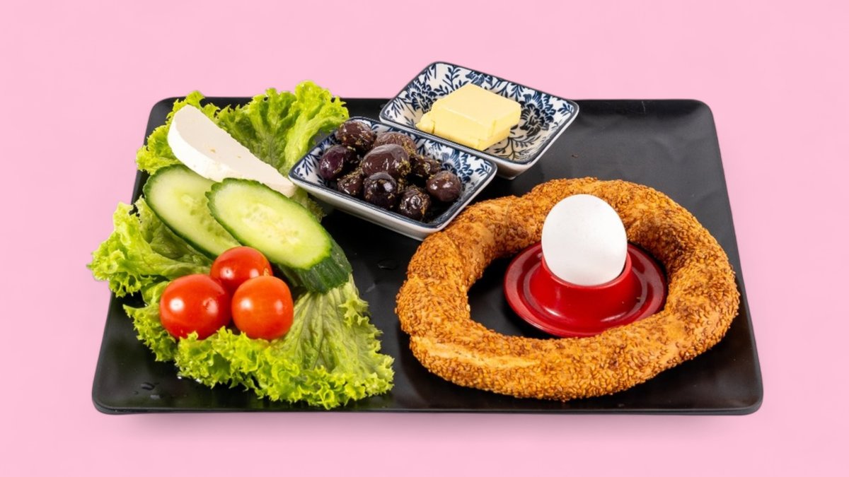 mit Simit, Tomaten, Gurken, gekochtem Ei, Oliven, Butter und Käse Aufgrund der Art und Weise der Aufbewahrung kann das Produkt mit verschiedenen Nüssen in Kontakt kommen