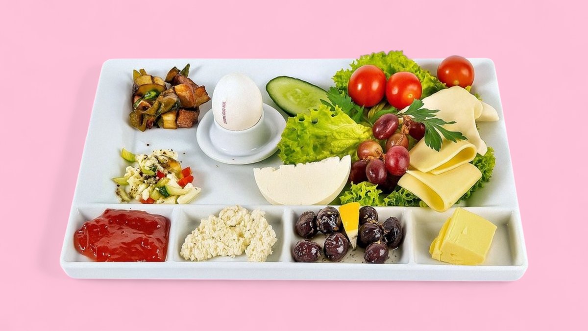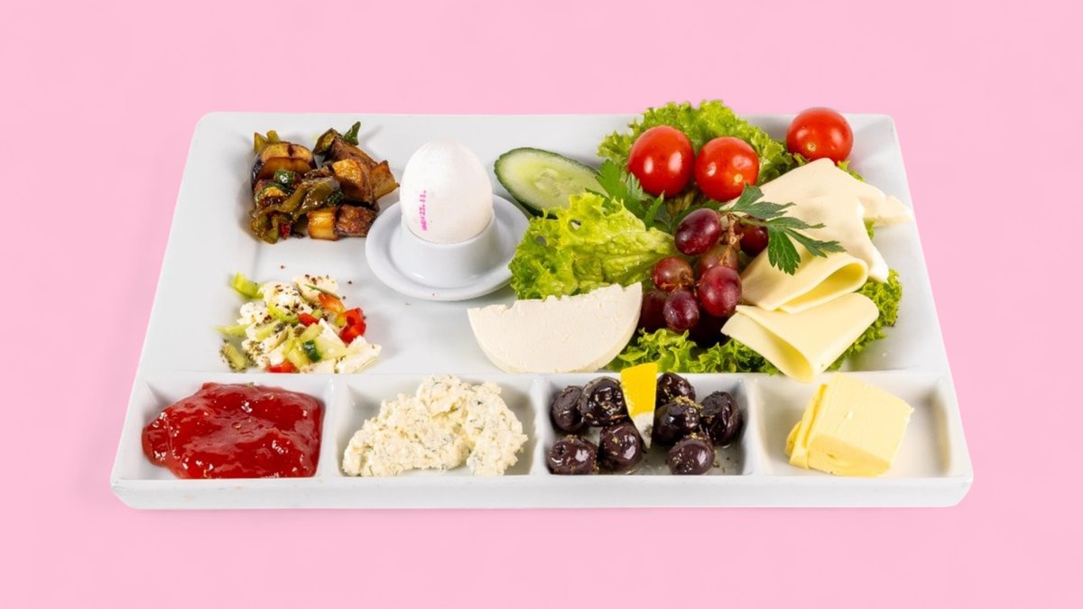 für 2 Personen mit Gouda, Mozzarella, Feta, hausgemachtem Acuka und Frischkäse, Tomaten, Gurken, Oliven, Salami, Marmelade, Butter, Honig, Joghurt mit Obst, 2 Brötchen und 2 Simit Aufgrund der Art und Weise der Aufbewahrung kann das Produkt mit verschiedenen Nüssen in Kontakt kommen