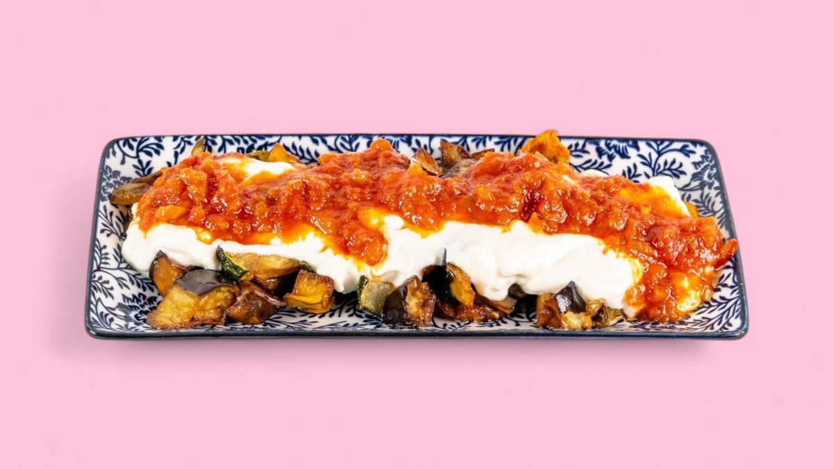 mit Auberginen, Hackfleisch, Tomaten, Gurken, Paprika und Joghurt Aufgrund der Art und Weise der Aufbewahrung kann das Produkt mit verschiedenen Nüssen in Kontakt kommen