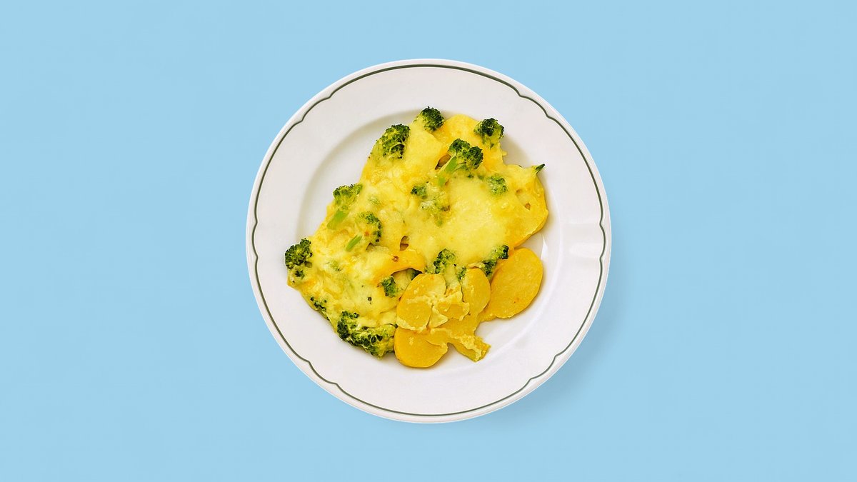 Kartoffelscheiben mit Sauce hollandaise, Käse überbacken und einer Zutat deiner Wahl