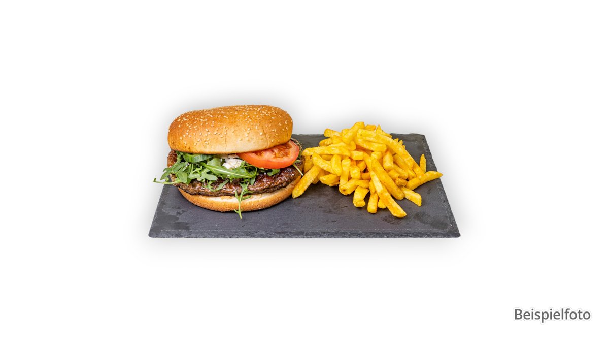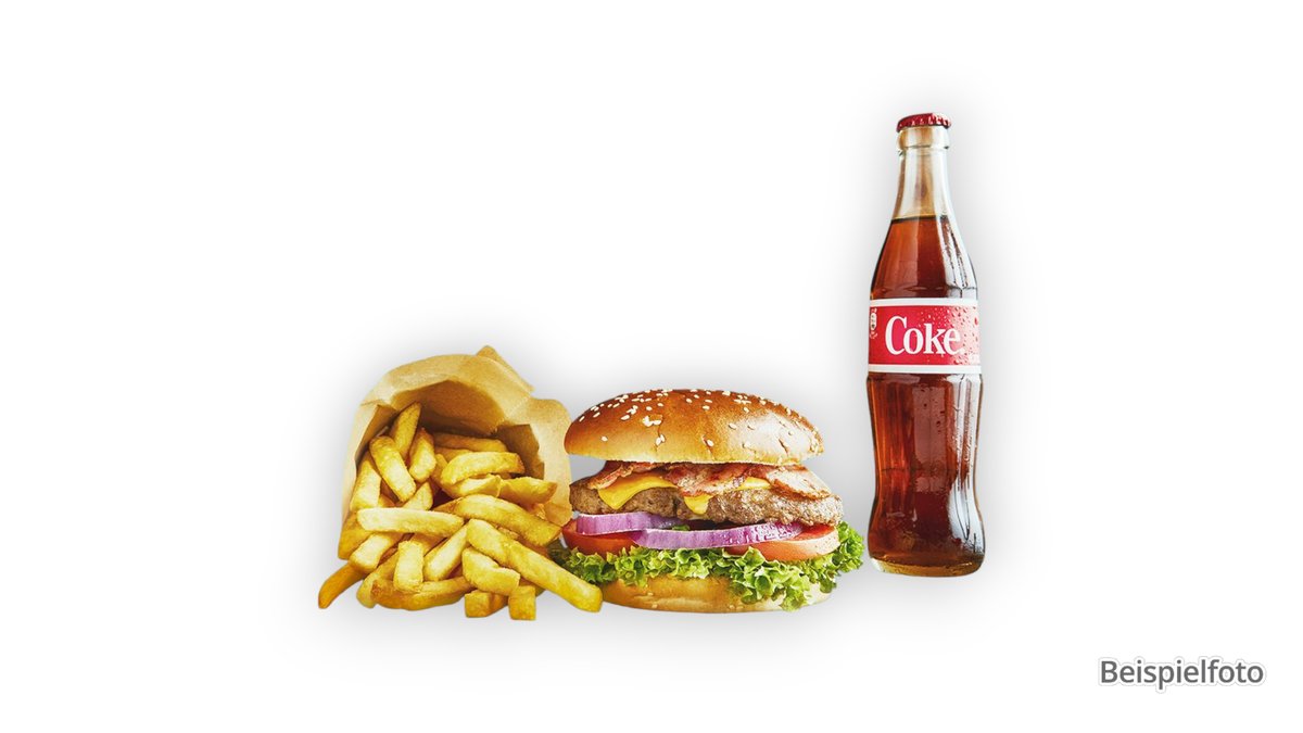 1x Hamburger, 1x Pommes frites, 1x alkoholfreies Getränk 0,33 l deiner Wahl