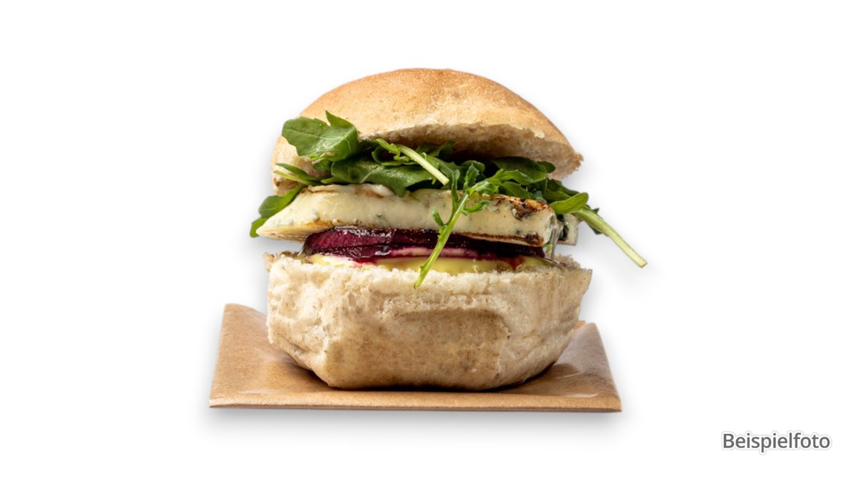 180 g Rindfleisch-Patty, Blattsalat, Tomaten, Gurken, Zwiebeln, Käse, Burger-Dressing und Brioche Bun