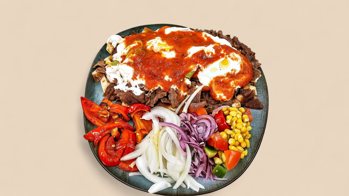 mit Dönerfleisch und Zwiebeln