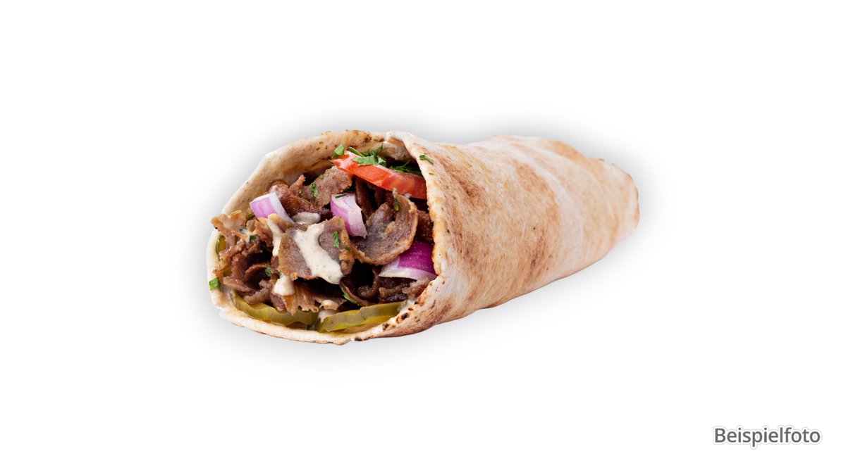 mit Drehspießfleisch vom Rind, Peperoni und Zwiebeln