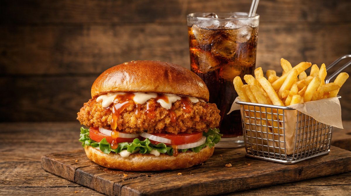 Crispy Chicken Burger Menü mit 0,33 l Getränk deiner Wahl