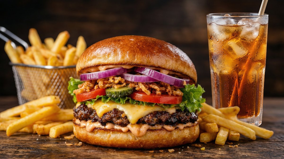 Hamburger Menü mit 0,33 l Getränk deiner Wahl