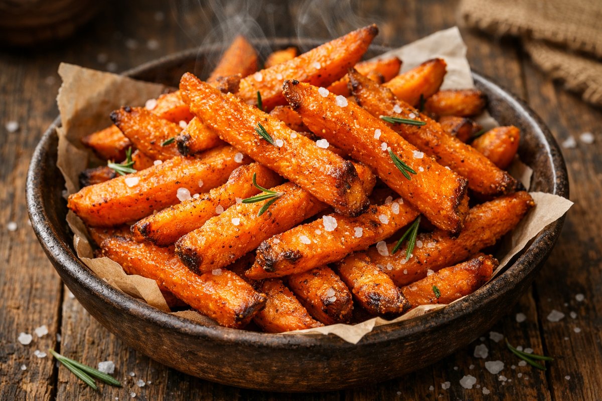 alle Gerichte werden in einer Größe deiner Wahl serviert („33. Home Fries“, „34. Crispy Curly Fries“ und „35. Sweet Potato Fries“ werden nur in einer Größe serviert)