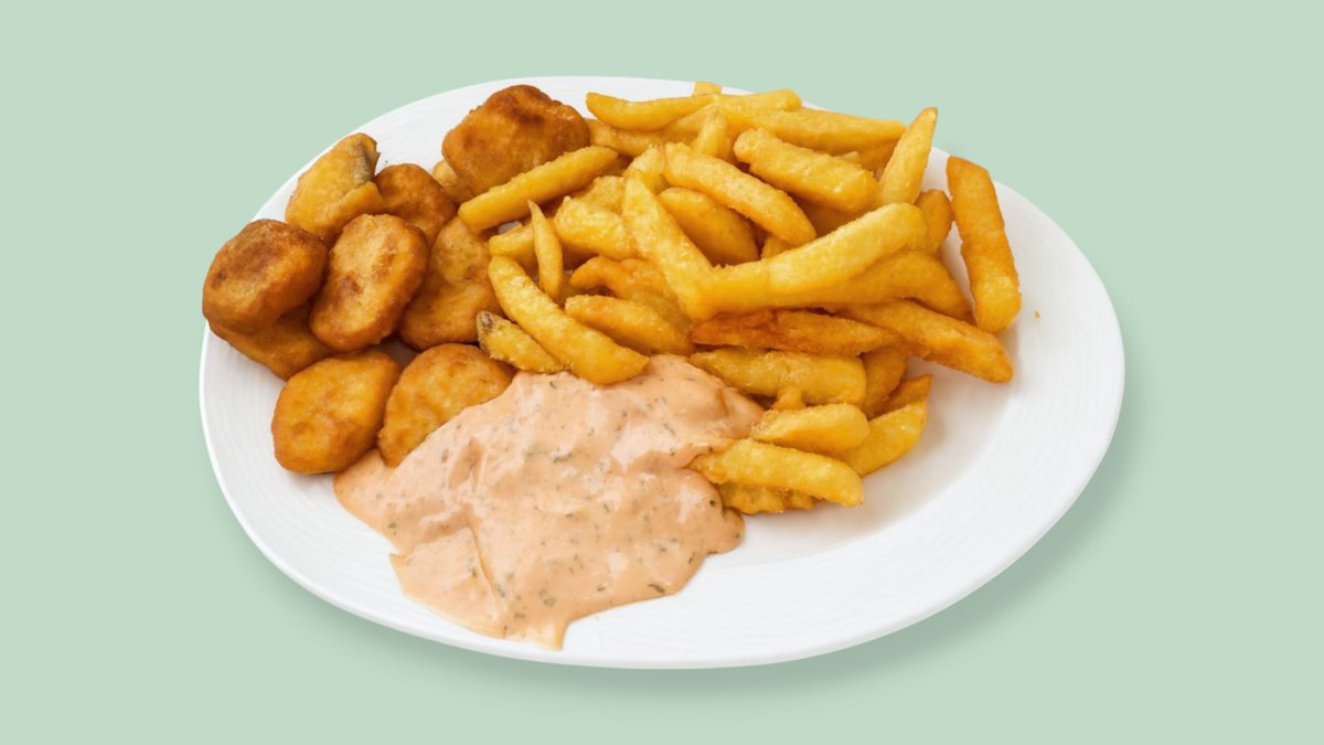 mit 6 Nuggets, Pommes frites und Spezialsoße