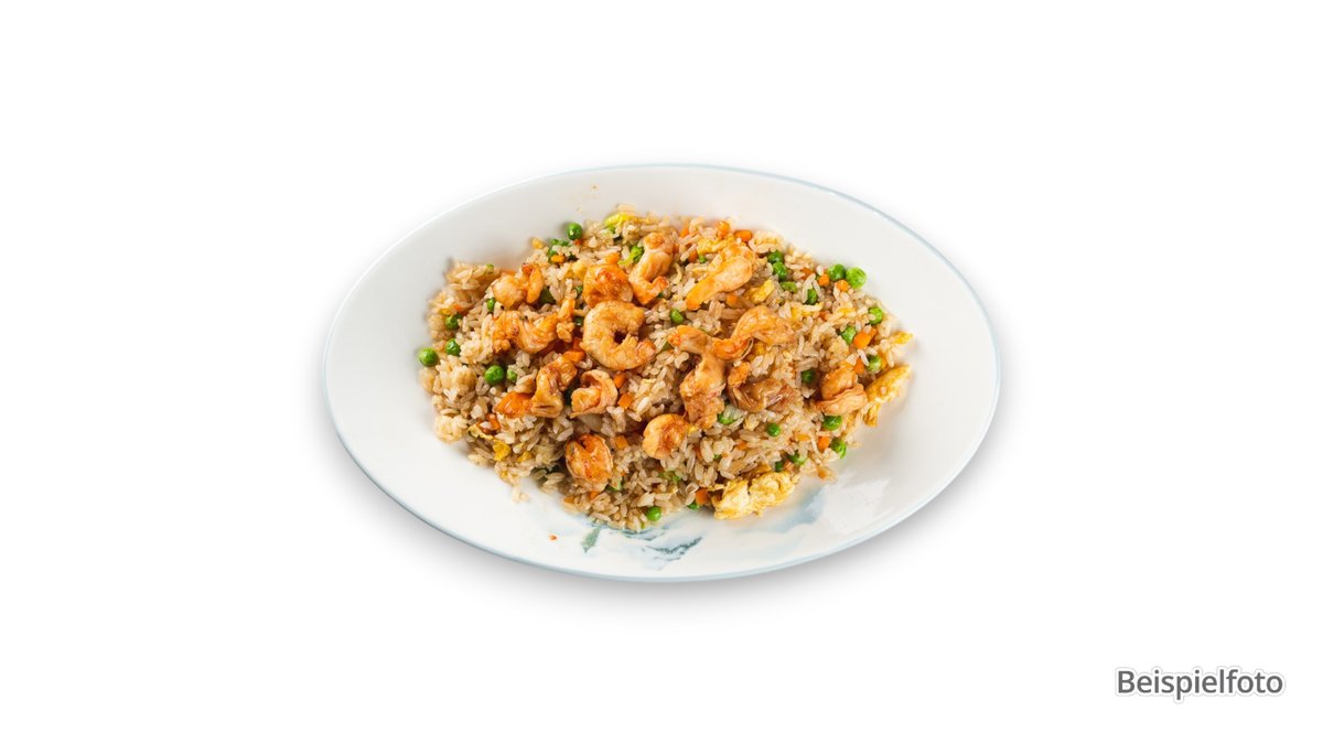 Gebratener Reis mit panierten Riesengarnelen