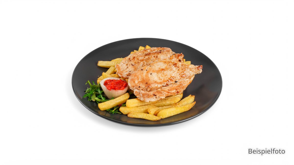 kleines Schnitzel vom Schwein mit Pommes frites