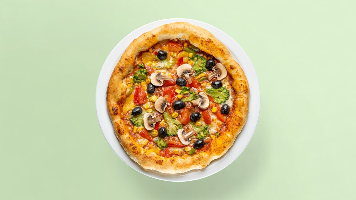 mit Brokkoli, Champignons, Tomaten, Paprika, Mais und Oliven