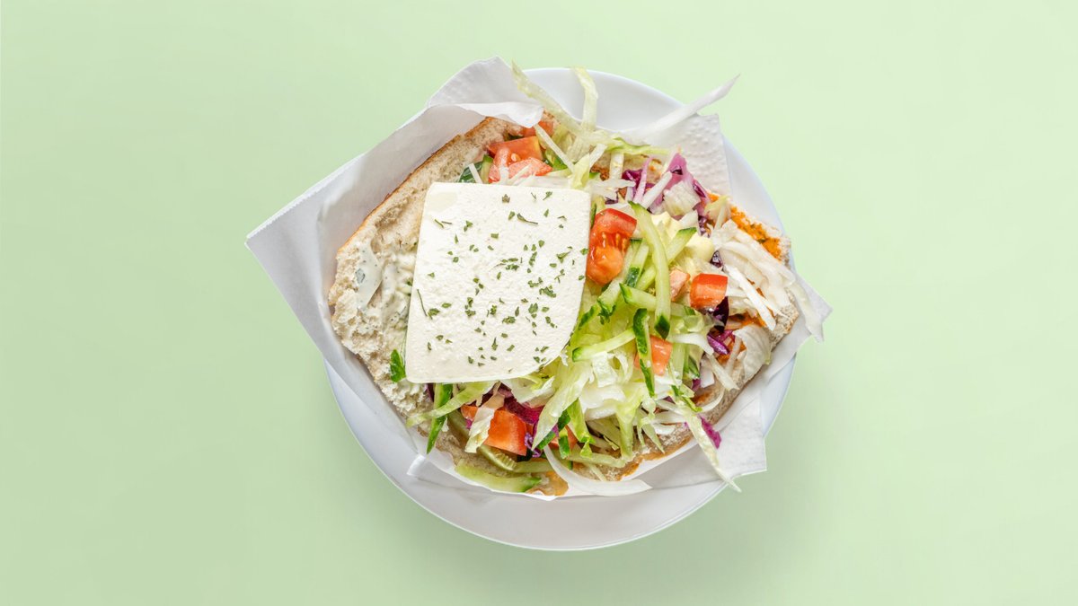 alle Gerichte werden mit Eisbergsalat, Weißkraut, Rotkraut, Tomaten, Gurken, Zwiebeln und Soßen deiner Wahl zubereitet
