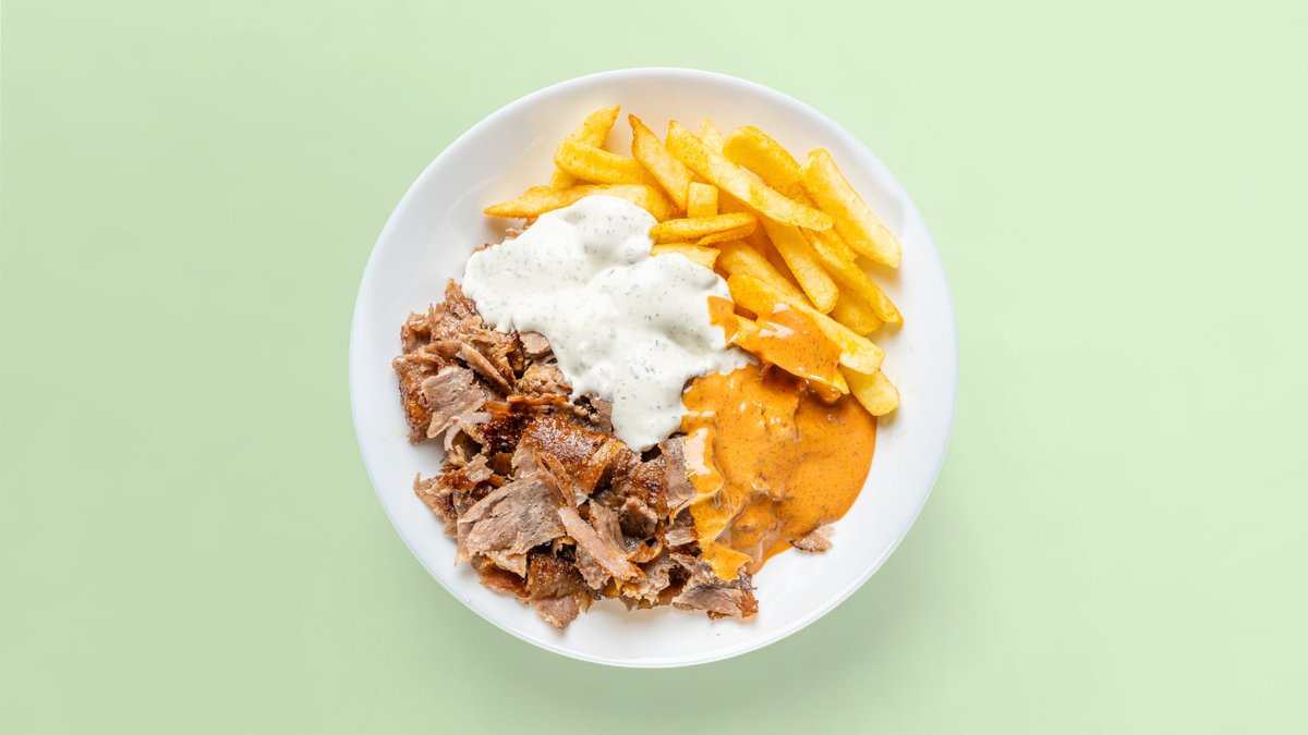 mit Dönerfleisch vom Kalb und Zwiebeln