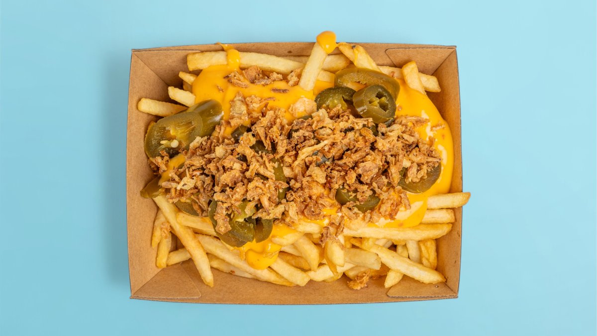 mit Jalapeños, Röstzwiebeln und Chili-Käsesoße