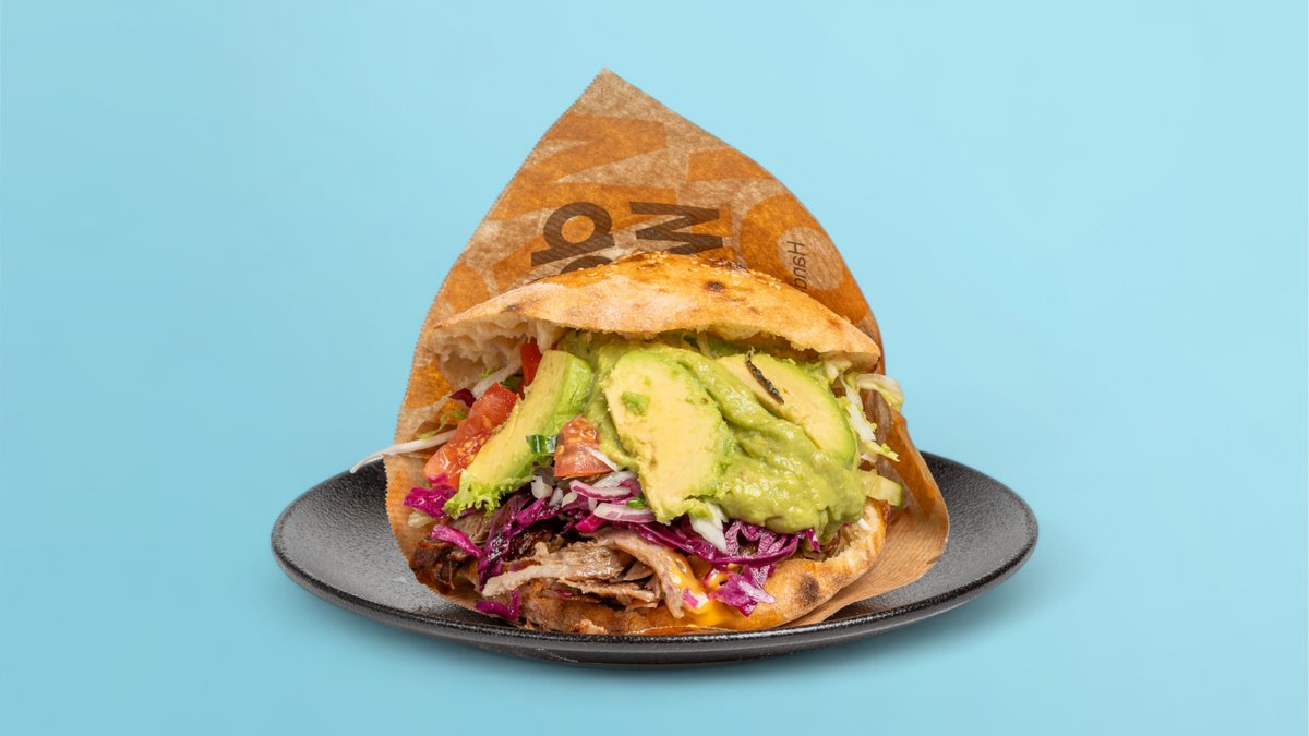 mit Guacamole, Schmand, gewürfelten Tomaten und Mozzarellakugeln