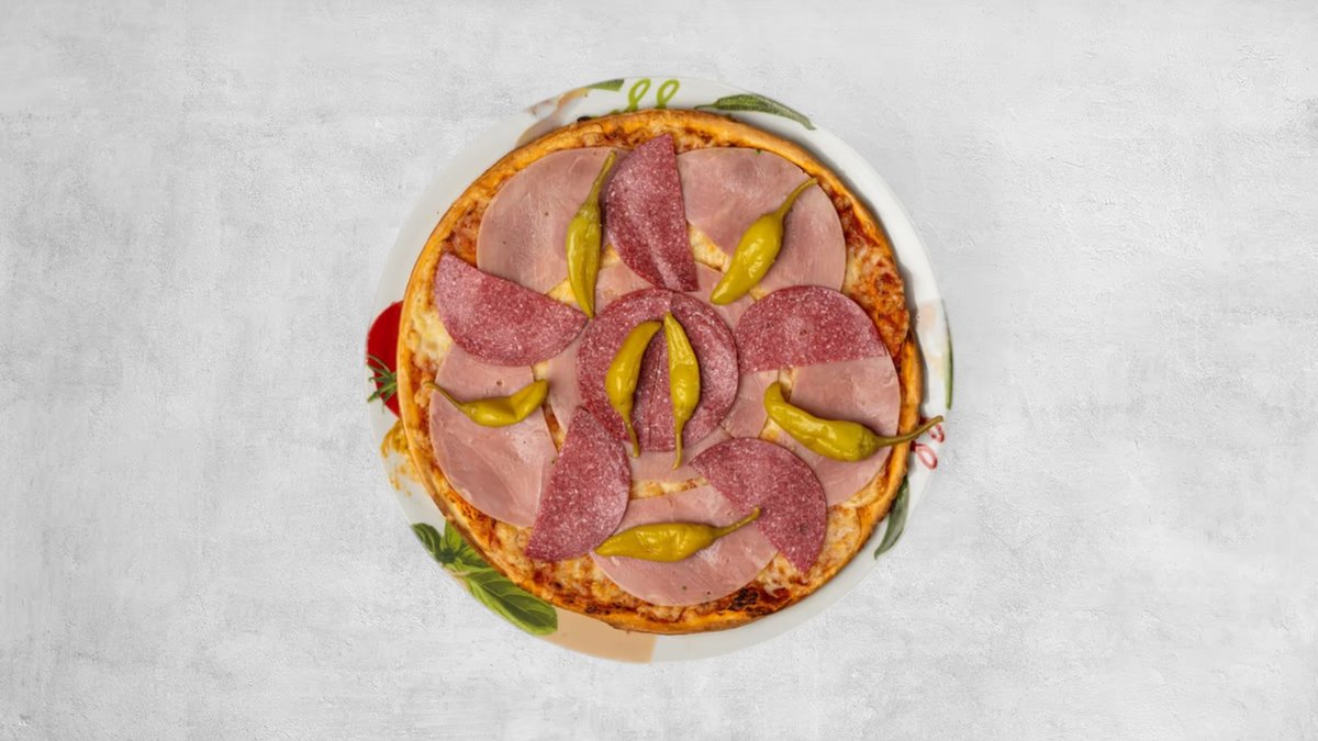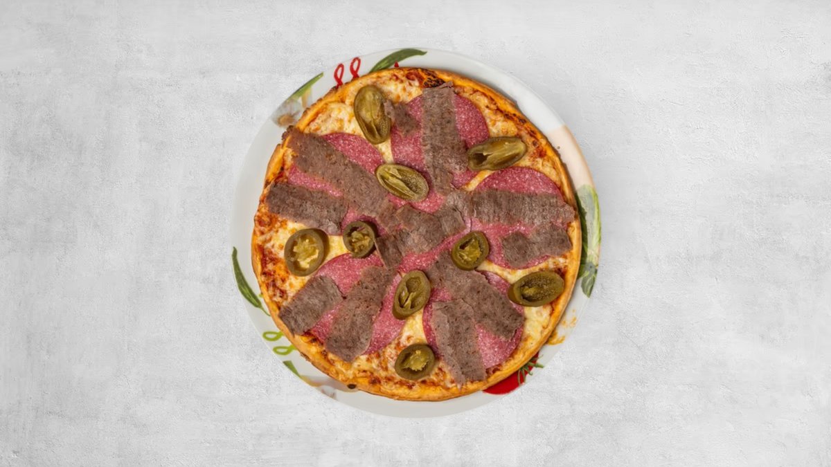mit Salami vom Rind, Jalapeños und Kebabfleisch vom Kalb und Rind