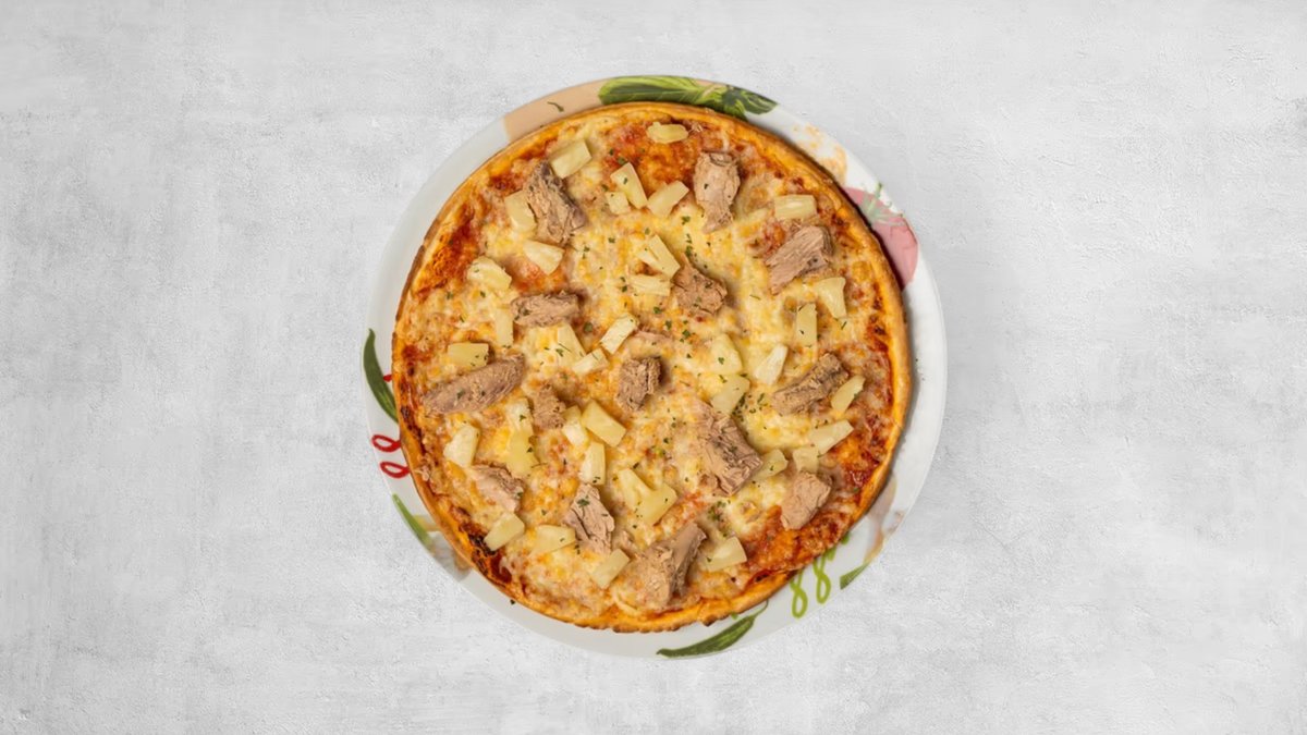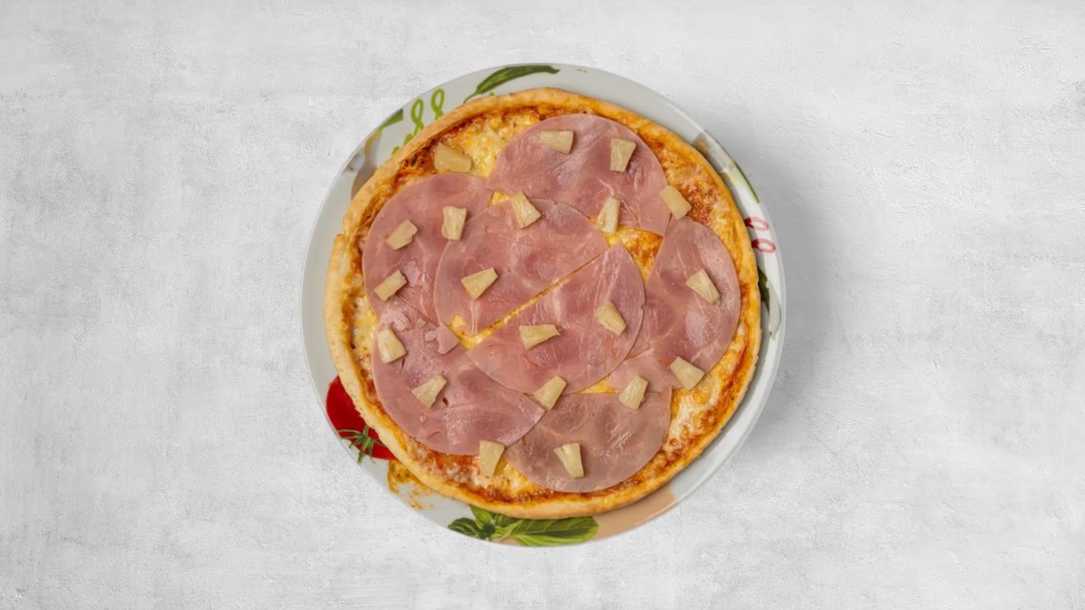 mit Tomatensoße, Schinken vom Rind und Ananas