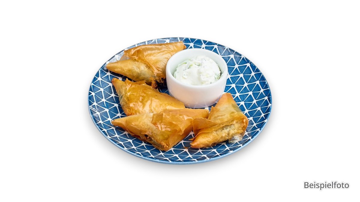 Blätterteig gefüllt mit Feta, dazu Tsatsiki
