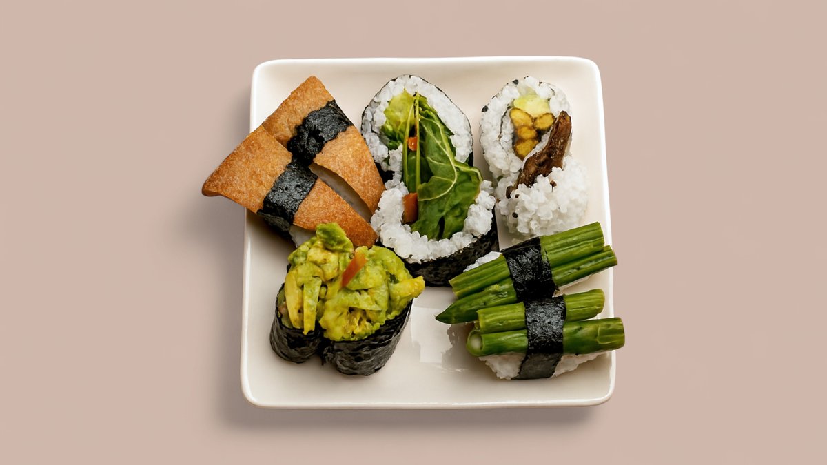 grüner Spargel, Avocado, Gurken, Schinko, Kampyo und Rucola