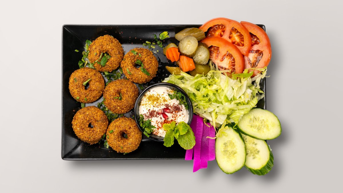6 Stück Kichererbsen mit Gewürzen, Gemüse und Tahini