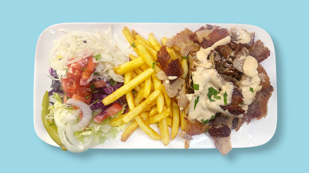 alle Gerichte werden mit Kalbsfleisch, Salat und Joghurtsoße zubereitet („Drehspießfleisch” wird ohne Salat und Joghurtsoße zubereitet, „Überbackenes Drehspießfleisch”, „Überbackener Drehspießfleisch Sucuk” und „Überbackener Drehspießfleisch Brokkoli” werden ohne Salat zubereitet)