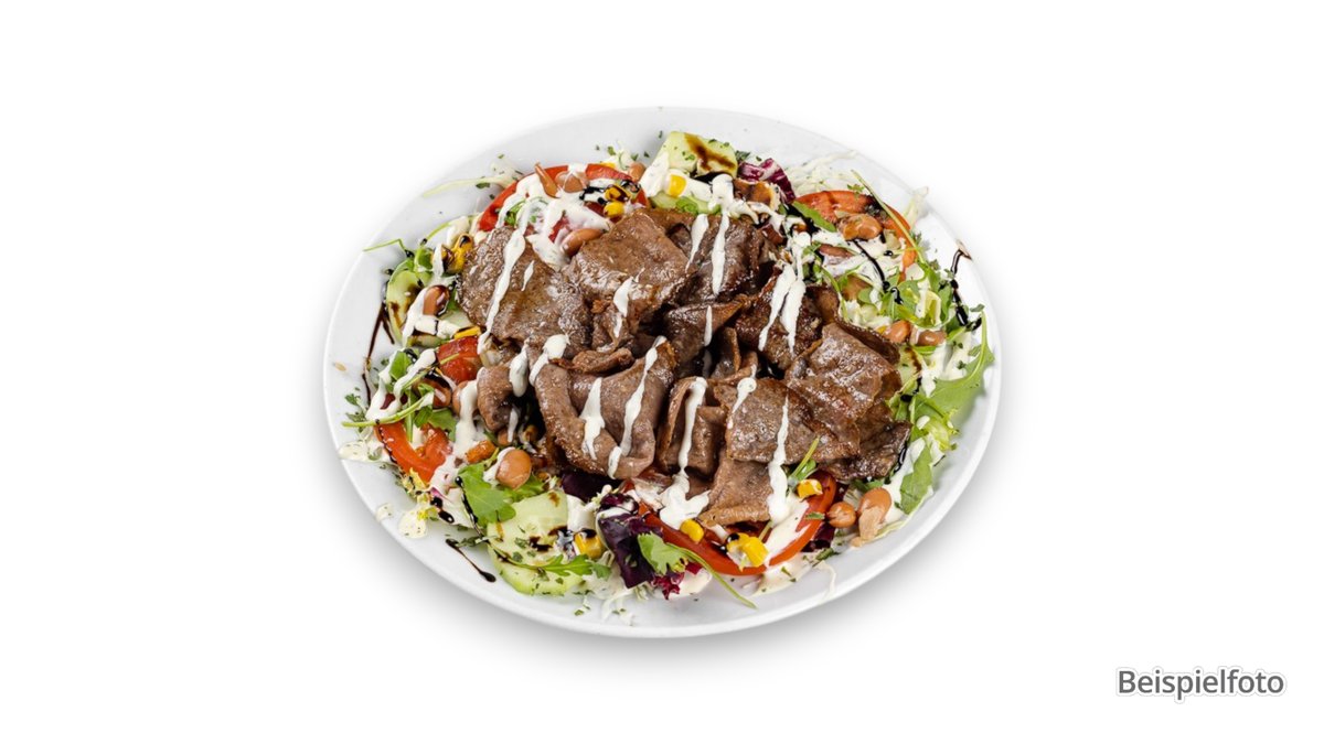 alle Salate werden mit Eisbergsalat, frischen Tomaten, Gurken und Joghurt-Dressing zubereitet und mit Pizzabrot serviert („Salat Roma” und „Salat Caprese” werden ohne Gurken zubereitet und „Salat Regina” wird ohne Eisbergsalat zubereitet)