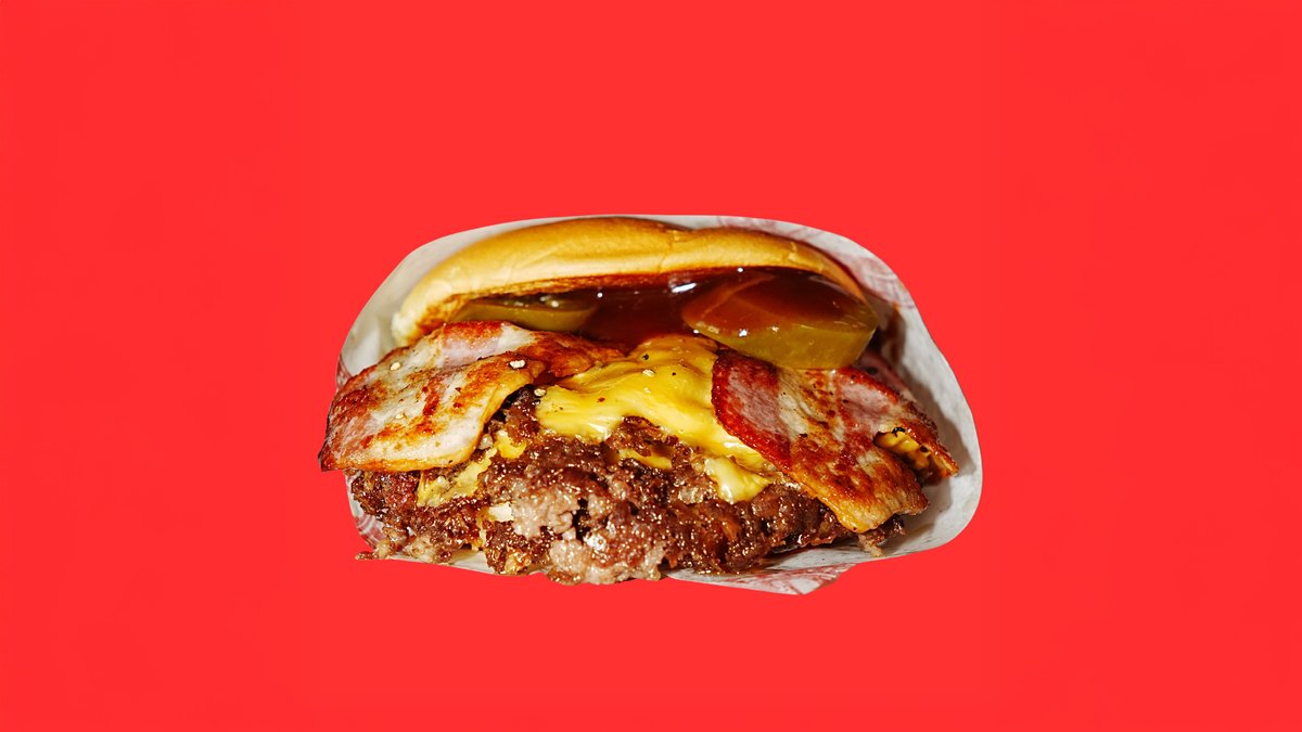 mit 2x 100g Beef-Patties, doppeltem Käse, Turkey Bacon, Jalapenos, und Barbecuesauce