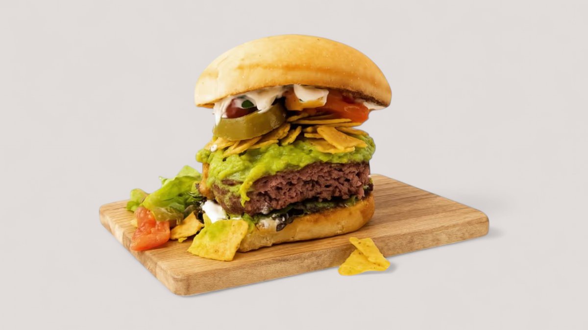 mit veganem Patty, Guacamole, Tomaten, Salat und mexikanischem Gemüse
